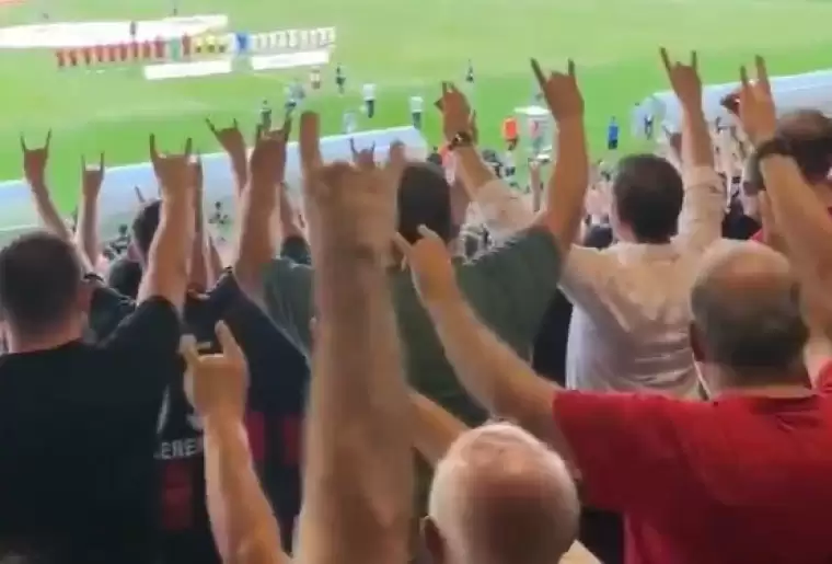 Maç öncesinde İstiklal Marşı sırasında Karagümrük taraftarları tribünlerde bozkurt işareti yaparak dikkat çekti.