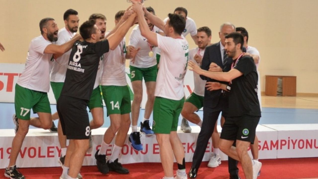 TVF Erkek Birinci Ligi’ni birinci olarak tamamlayan Bursa Büyükşehir Belediyespor Kulübü şampiyonluk kupasını Türkiye Voleybol Federasyonu Başkanı Mehmet Akif Üstündağ’ın elinden aldı.