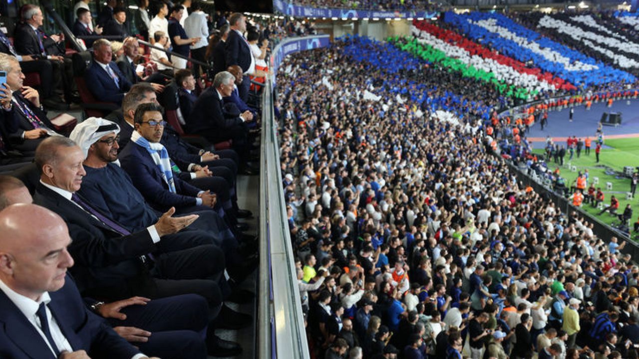 Erdoğan, burada, İngiltere'nin Manchester City takımıyla İtalya'nın Inter ekibi arasında oynanan final maçını izlemek üzere yerini aldı.
