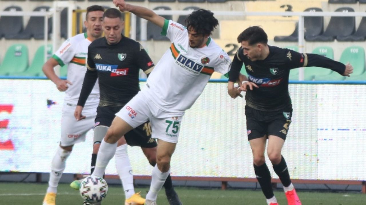 43. dakikada Aytemiz Alanyaspor'da Davidson'un ceza sahası dışından ayak içi ile çektiği şutta kaleci Cenk Gönen topu kornere gönderdi.