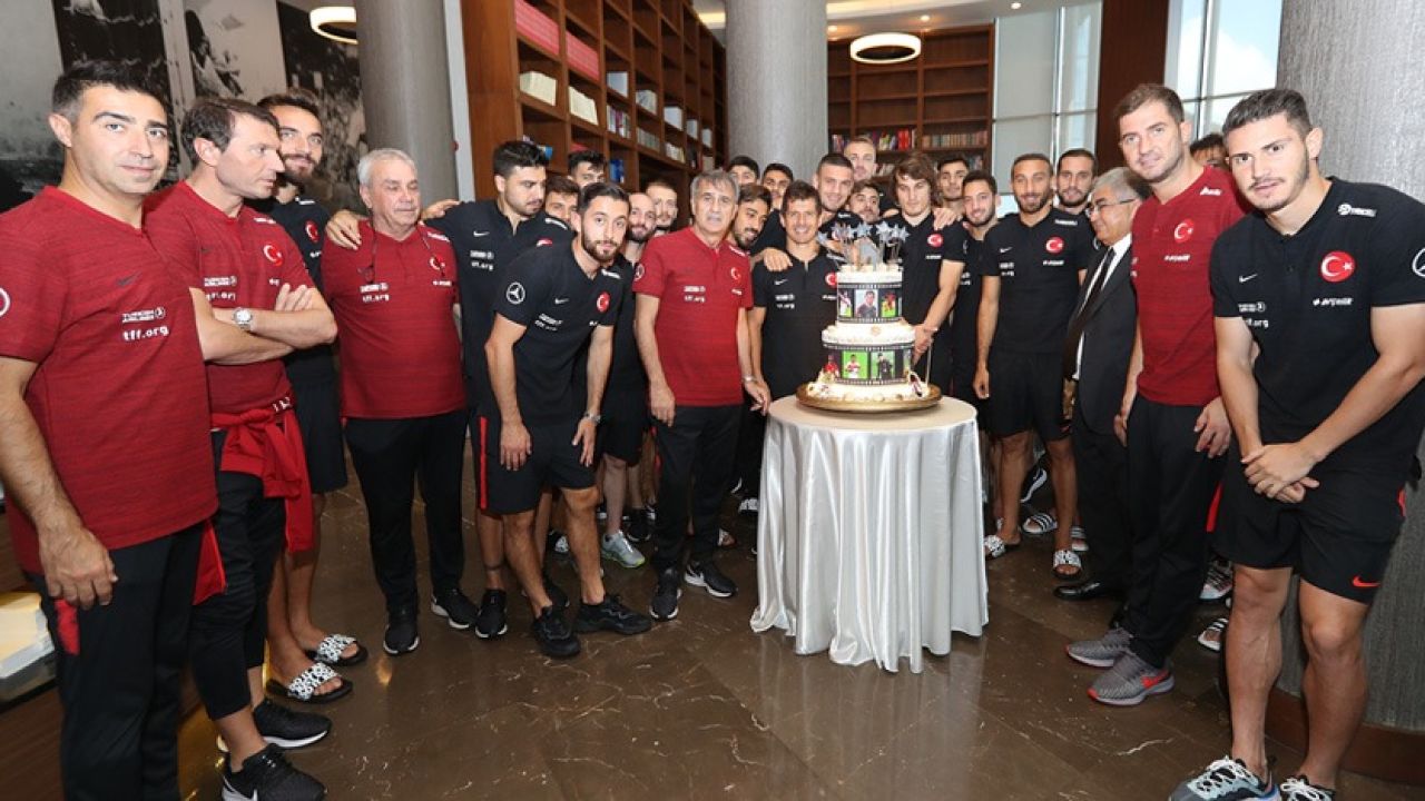 Bugün 39 yaşına giren Emre Belözoğlu’na Andorra maçı öncesi TFF Hasan Doğan Milli Takımlar Kamp ve Eğitim Tesisleri’nde doğum günü kutlaması yapıldı. Belözoğlu’nun eşi ve çocuklarının da katıldığı kutlamada doğum günü pastasını A Milli Takım Teknik Direktörü Şenol Güneş ile birlikte kesen ve ardından kısa bir konuşma yapan Emre, "1994 yılında ilk kez milli formayı giydiğim zaman da TFF Riva Tesisleri’nde kamp yapmıştık. Bugün 39. doğum günümü milli takım kampında yine aynı yerde kutluyorum. O zaman milli formayı giyerken yaşadığım heyecan ve gururu bugün de aynen hissediyorum. Yaşça genç arkadaşlarıma bir tavsiyede bulunmak istiyorum. Futbolu sevin. Bugün neye sahip olduysam önce Allah, sonra futbol sayesindedir. Ay-Yıldızlı formamız dünyanın en güzel forması, Türk bayrağı da dünyanın en güzel bayrağı. Bunlar için mücadele vermek müthiş bir duygu. Şu anda çok iyi oyunculardan oluşan genç bir takıma sahibiz. Ben de onlardan aldığım enerjiyle kendimi diri ve genç hissediyorum. Bu güzel takıma beni de dahil ettiği için hocamız Şenol Güneş’e çok teşekkür ediyorum" açıklamasını yaptı.