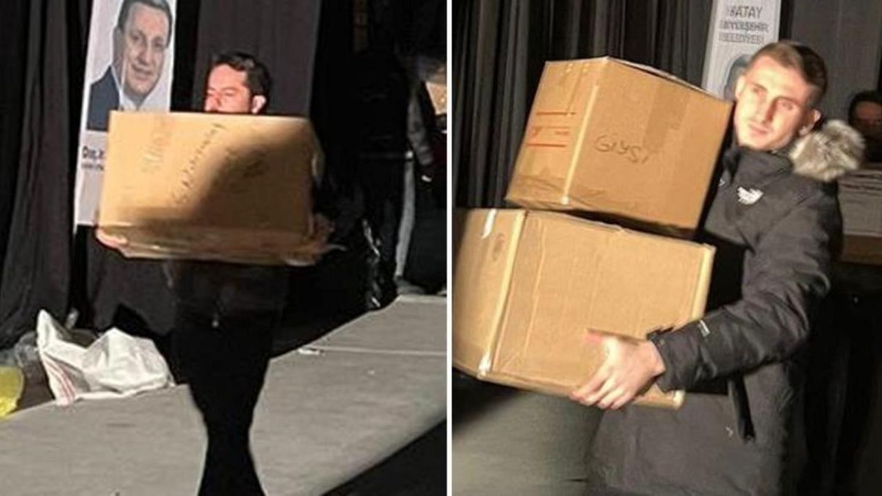Erden Timur ve Kerem Aktürkoğlu, yardım malzemelerini ve kolileri taşıdı. Timur ve Aktürkoğlu'nun desteği görevlilere moral oldu.