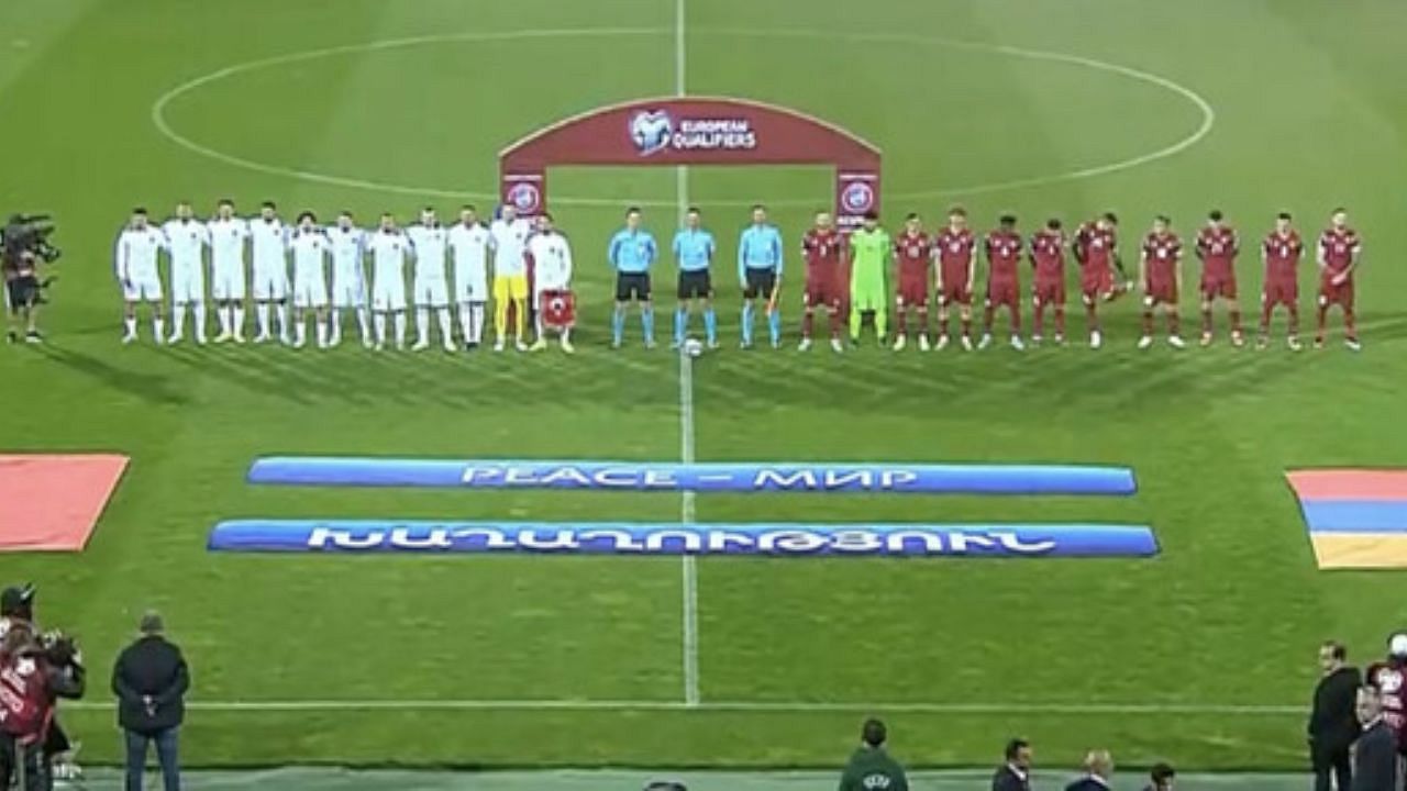 Başkent Erivan'daki Republican Stadyumu'nda oynanan mücadele öncesinde Ermeni taraftarlar, büyük bir saygısızlık yaptı.