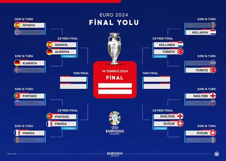 EURO 2024'te son 16 turunda alınan sonuçlar şöyle: