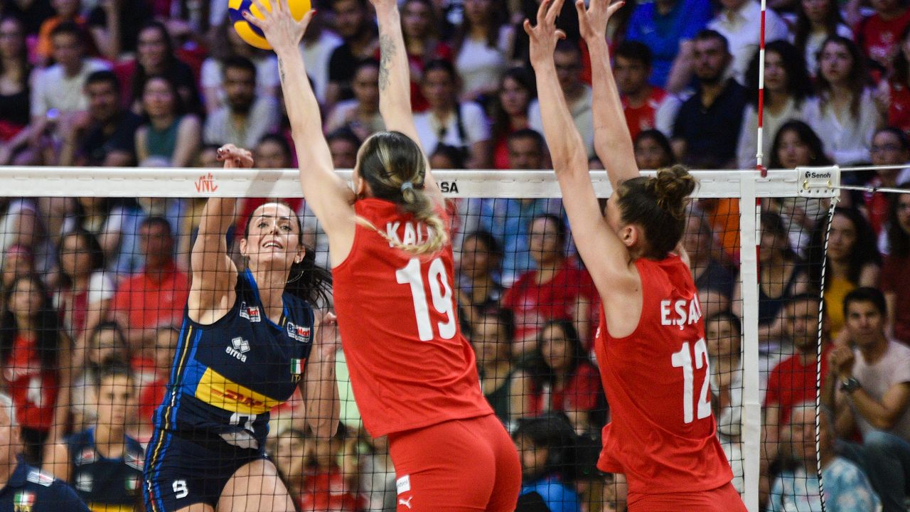 A Milli Kadın Voleybol Takımı, Voleybol Milletler Ligi’nin Antalya etabındaki üçüncü maçında İtalya ile karşılaştı. Antalya Spor Salonu’nun tamamını dolduran seyirciler müsabaka boyunca ay yıldızlılara destek oldu. Karşılaşmanın ilk seti iki takımın karşılıklı sayılarıyla geçti. İtalya setin sonlarına doğru farkı 4 sayıya kadar çıkartsa da Filenin Sultanları 4 sayılık seri ile durumu 24-24’e getirdi. Ay yıldızlılar seti 27-25 kazanarak durumu 1-0’a getirdi.