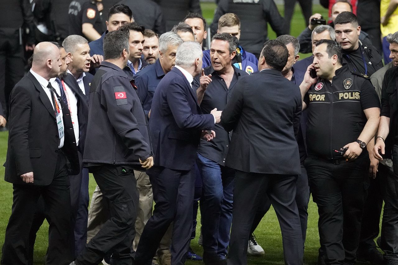 Trendyol Süper Lig'in 37. haftasında Fenerbahçe, deplasmanda Galatasaray'ı 1-0 yenerek şampiyonluk şansını son haftaya taşıdı. Derbi galibiyetinin ardından sarı-lacivertli kulübün başkanı Ali Koç ve yönetim kurulu üyeleri, takımı tebrik etmek için RAMS Park'a geldi. Koç ve yöneticiler, daha sonra takımı da alarak sahaya çıkıp sevinç gösterisinde bulunmak istedi. Sarı-kırmızılı yetkililer, sahaya çıkış kapısında sarı-lacivertlilere engel olmak istese de kafile yeşil zemine ayak basarak galibiyeti kutladı.