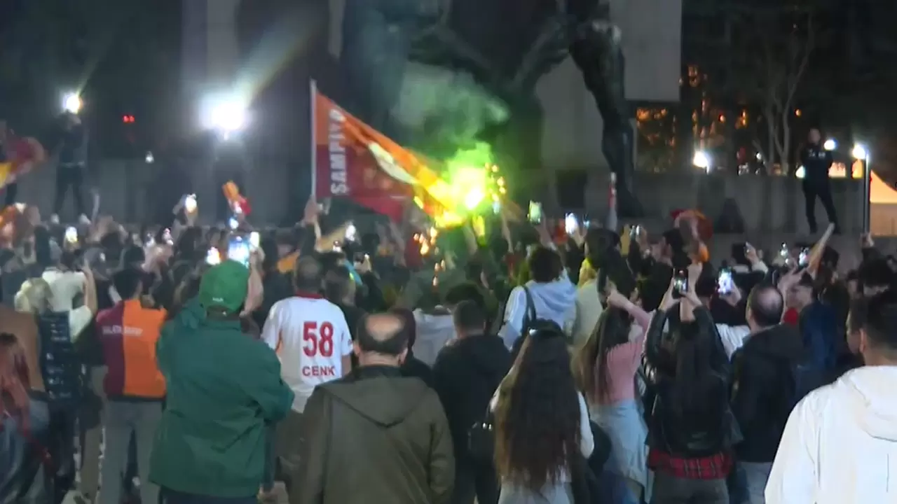 Trendyol Süper Lig'in 31. haftasında Galatasaray, sahasında Fenerbahçe'yi 3-0 yendi ve rakibiyle puan farkını 7'ye çıkardı. Bu galibiyetle şampiyonluğa bir adım daha yaklaşan Galatasaray'da taraftarlar maç sonu büyük sevinç yaşadı. Taksim Meydanı'nda toplanan sarı-kırmızılılar, marş ve tezahüratlarla galibiyeti doyasıya kutladı.