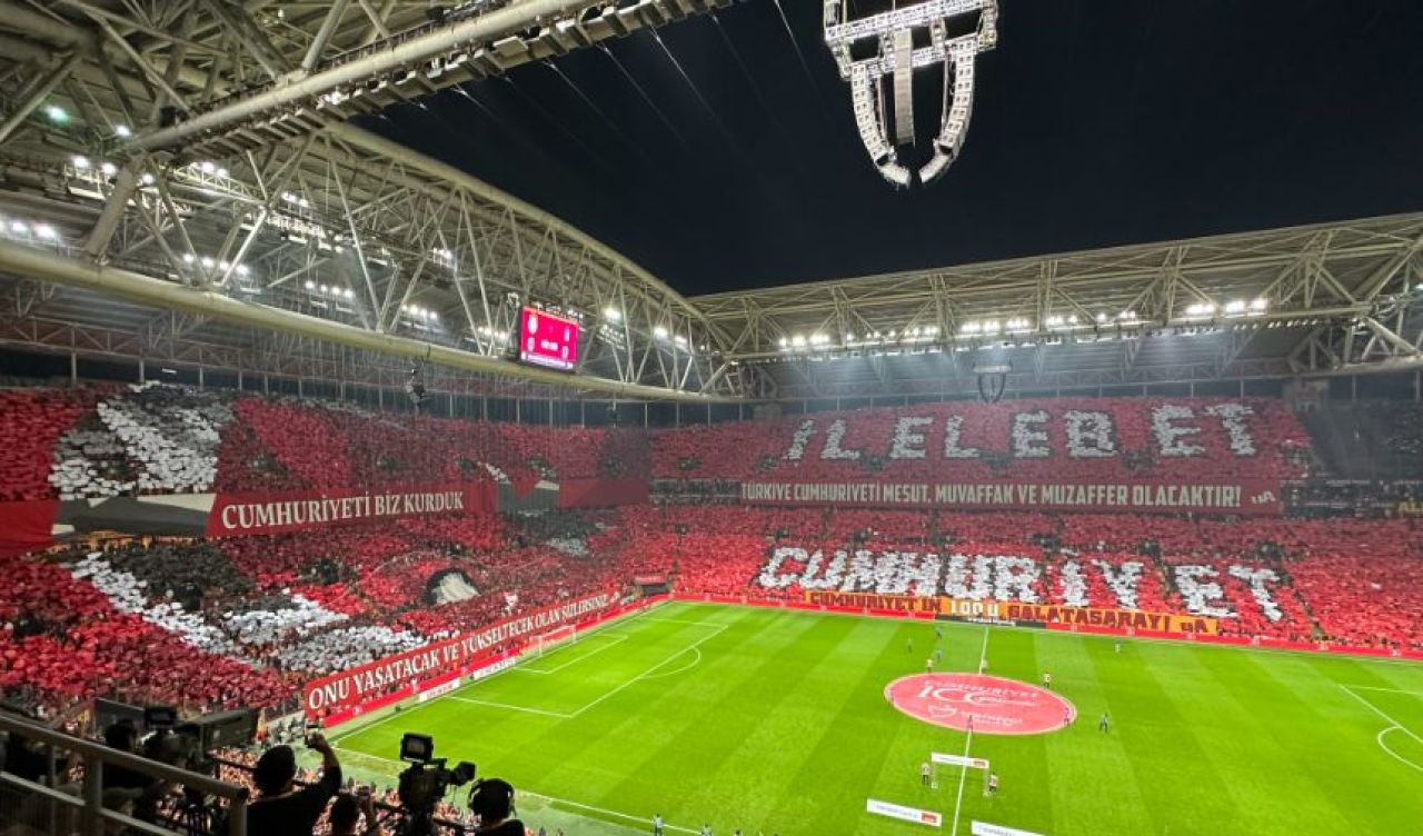 Trendyol Süper Lig’in 9. haftasında Galatasaray ile Beşiktaş, RAMS Park’ta karşı karşıya geliyor. Sarı-kırmızılı taraftarlar derbide özel bir koreografi gerçekleştirdi. Kuzey tribününde kartonlarla Türk bayrağı yapılırken, 3 boyutlu koreografide; Mustafa Kemal Atatürk, Metin Oktay, Bülent Korkmaz, Okan Buruk, Aziz Sancar, öğretmen, madenciler ve öğrencilerin resimleri yer aldı. Doğu tribününde ise kartonlarla ilk önce '1923' ve '2023' yazıldı. Daha sonra kartonların diğer tarafıyla 'İlelebet Cumhuriyet' yazısı gösterildi.