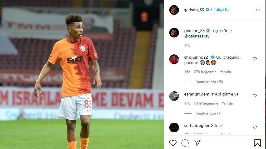 Fernandes paylaşımında, "Teşekkürler Galatasaray" ifadelerini kullandı. Sarı-kırmızılıların kaptanı Muslera da Fernandes'in paylaşımına yorum yaptı ve "Katkın için teşekkürler Gedson. Sen harika bir oyuncusun" mesajını paylaştı.