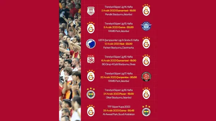 Galatasaray, sosyal medya hesabından Aralık ayında oynayacağı maçların programını paylaştı.