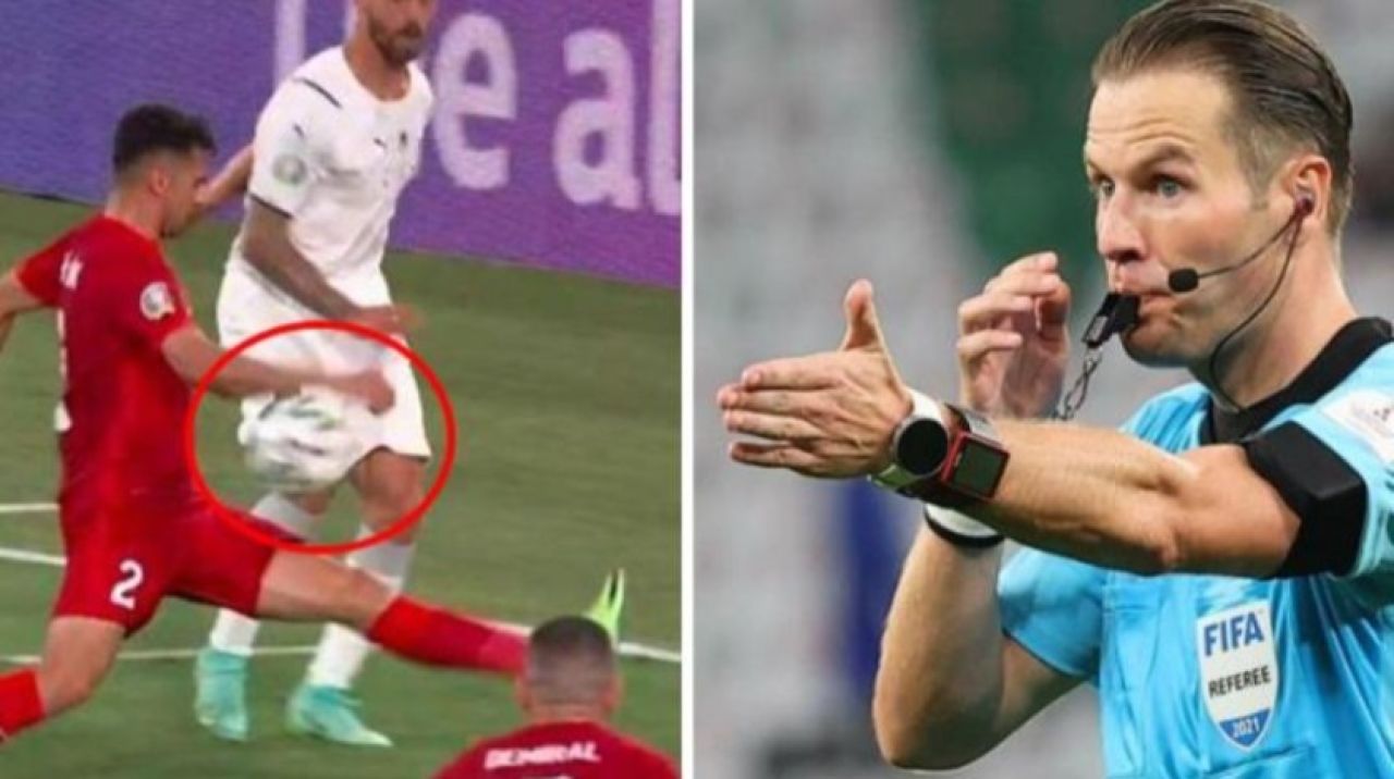 Bu karar sonrasında İtalyan futbolcular çılgına dönerken, Hollandalı hakem Danny Makkelie ilk yarının bittiğini işaret etti. UEFA'nın son yaptığı elle oynama kuralı değişikliği nedeniyle pozisyon penaltı olarak yorumlanmadı.