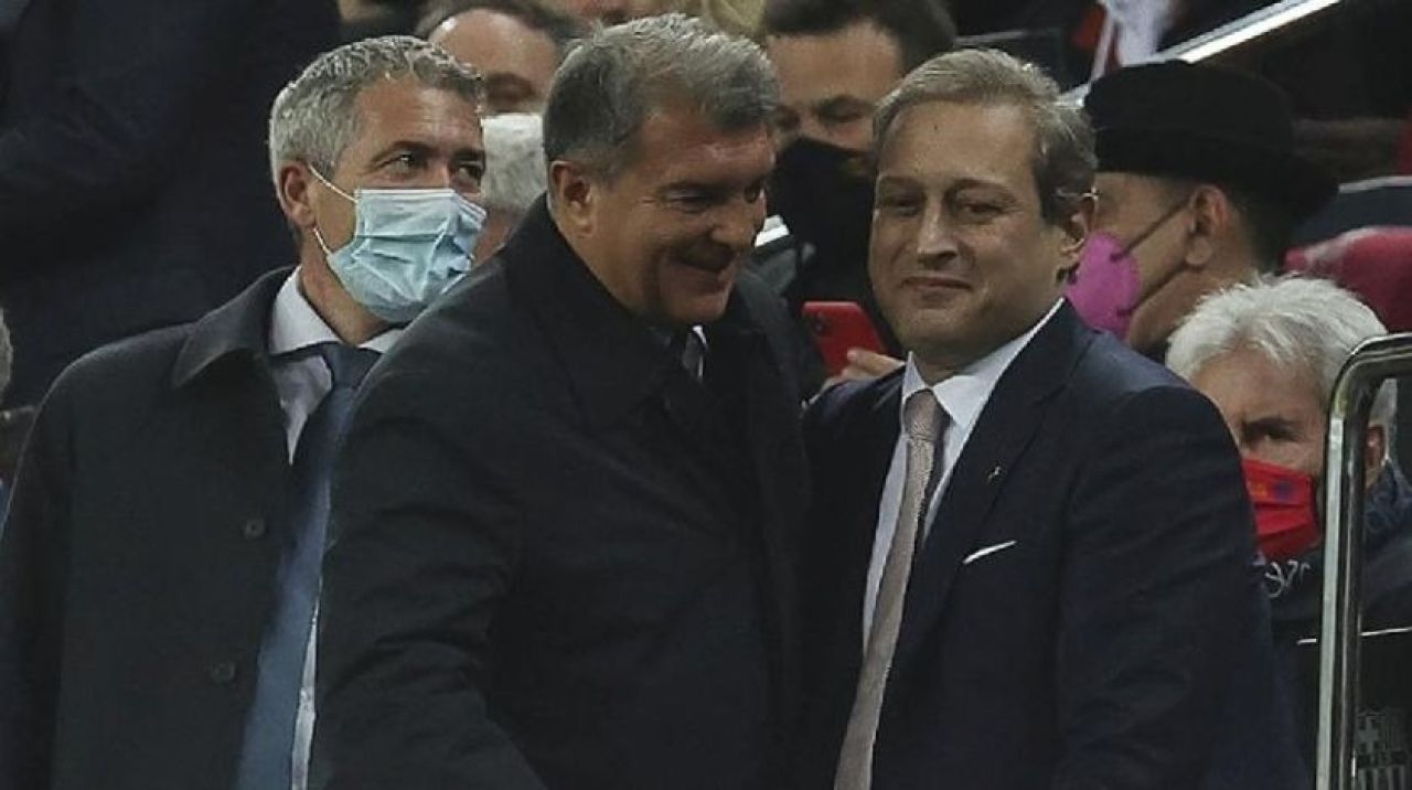 UEFA Avrupa Ligi son 16 turu ilk maçında taraflar Camp Nou'da karşılaşmış Burak Elmas ve Joan Laporta golsüz sona eren mücadeleyi birlikte izlemişlerdi.