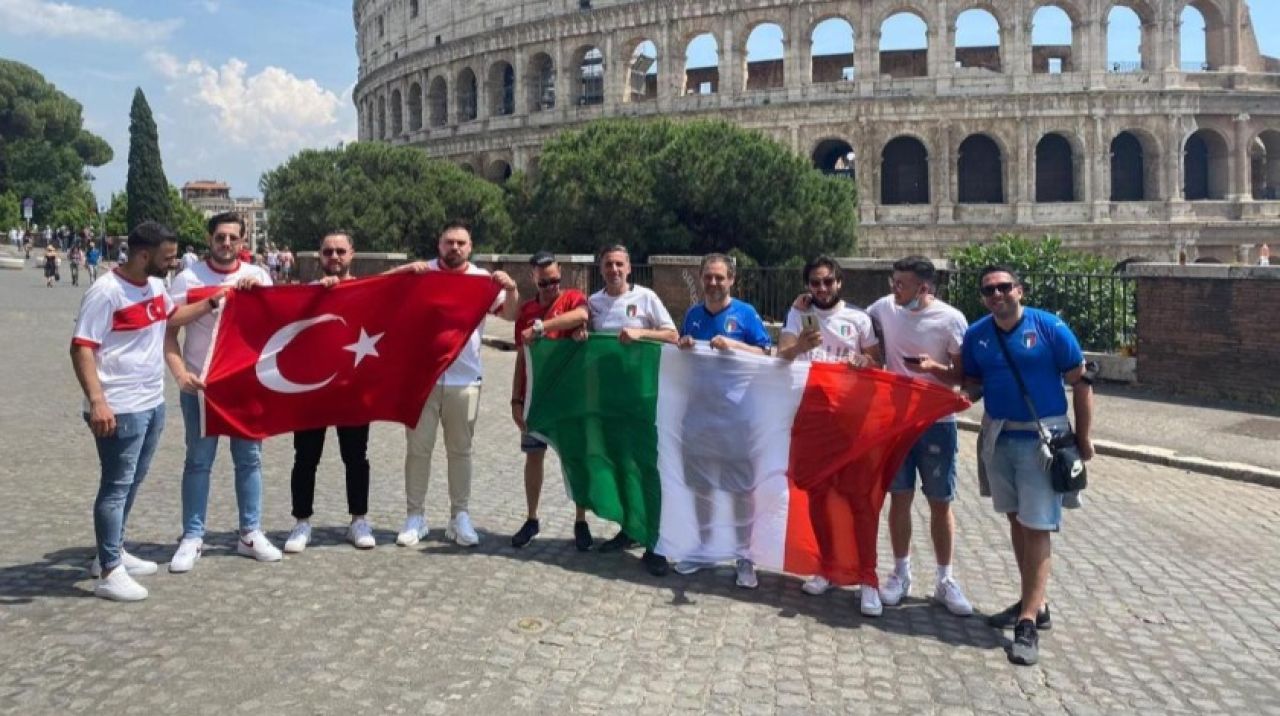 Roma'da Trevi Çeşmesi ve Kolezyum gibi turistik bölgelerde bir araya gelen taraftarlar, Türk bayraklarını sallayarak, tezahürat yaptı ve maç öncesinde ay-yıldızlı ekibe destek oldu.