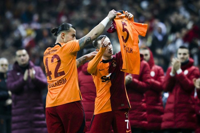Karşılaşmaya yoğun ilgi gösteren Galatasaraylı taraftarlar, Nef Stadı'nın tribünlerini doldurdu. Sarı-kırmızılı taraftarlar, son haftalarda etkili performansıyla liderlik koltuğuna oturan takımlarına destek verdi.