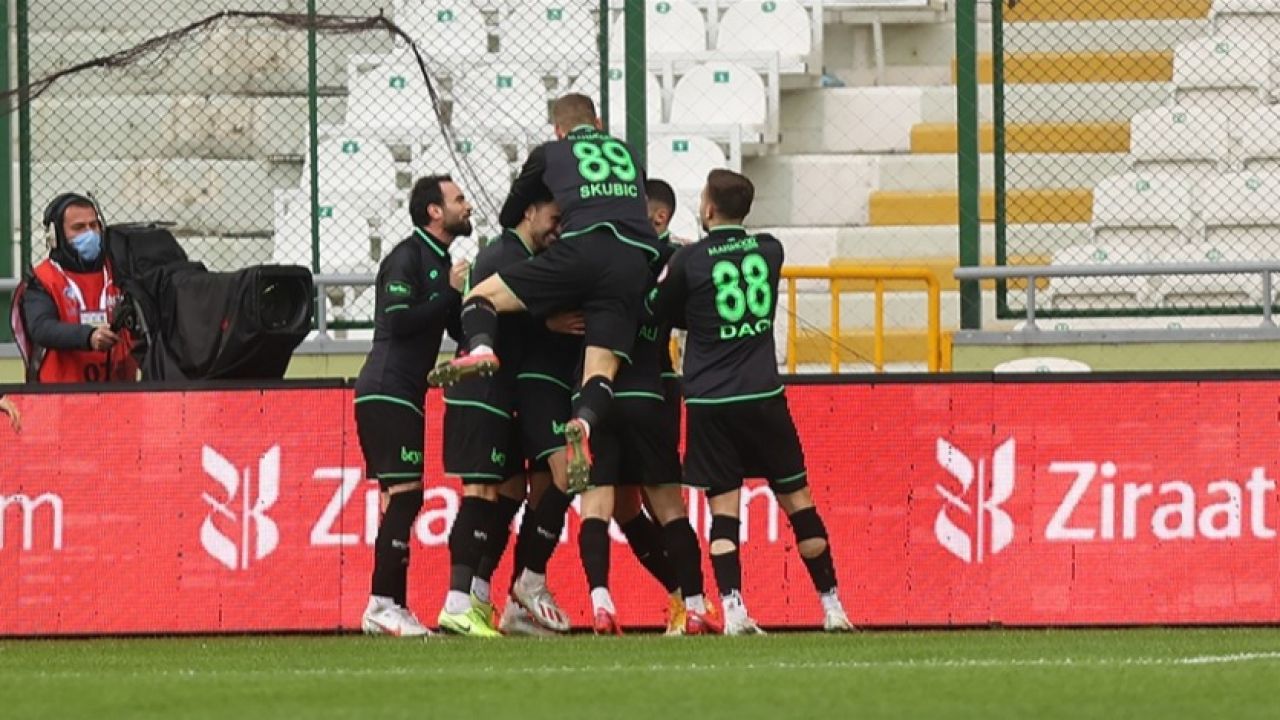 11. dakikada İttifak Holding Konyaspor öne geçti. Bytyqi'nin sağ taraftan kullandığı köşe atışı sonrasında, ceza sahası içinde topu önünde bulan Anicic'in gelişine vuruşunda, meşin yuvarlak ağlara gitti: 1-0