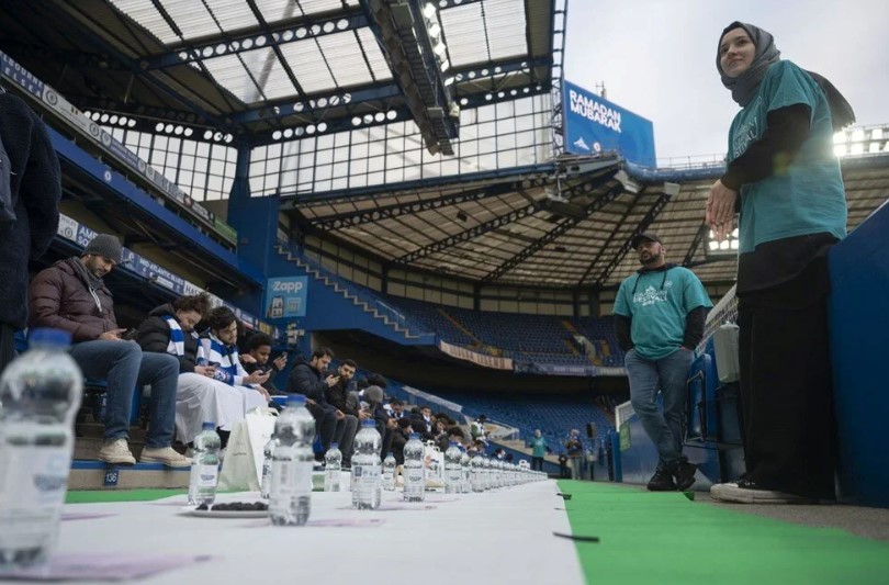 "Ramazan Çadırı Projesi" tarafından ülkede geleneksel hale getirilen "Açık İftar" etkinlikleri kapsamında, Chelsea'nin başkent Londra'daki stadında ilk kez toplu iftar verildi.