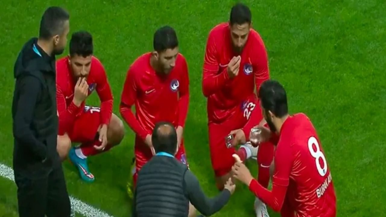 Konuk takım futbolcuları, Giresun'da iftar olmasıyla birlikte sakatlık pozisyonunda duran oyunu fırsat bilerek oruçlarını açmak için saha kenarına geldiler. Keçiörengücü'nde bir teknik ekip görevlisinin 4 futbolcuya hurma, su ve muz verdiği objektiflere yansıdı.