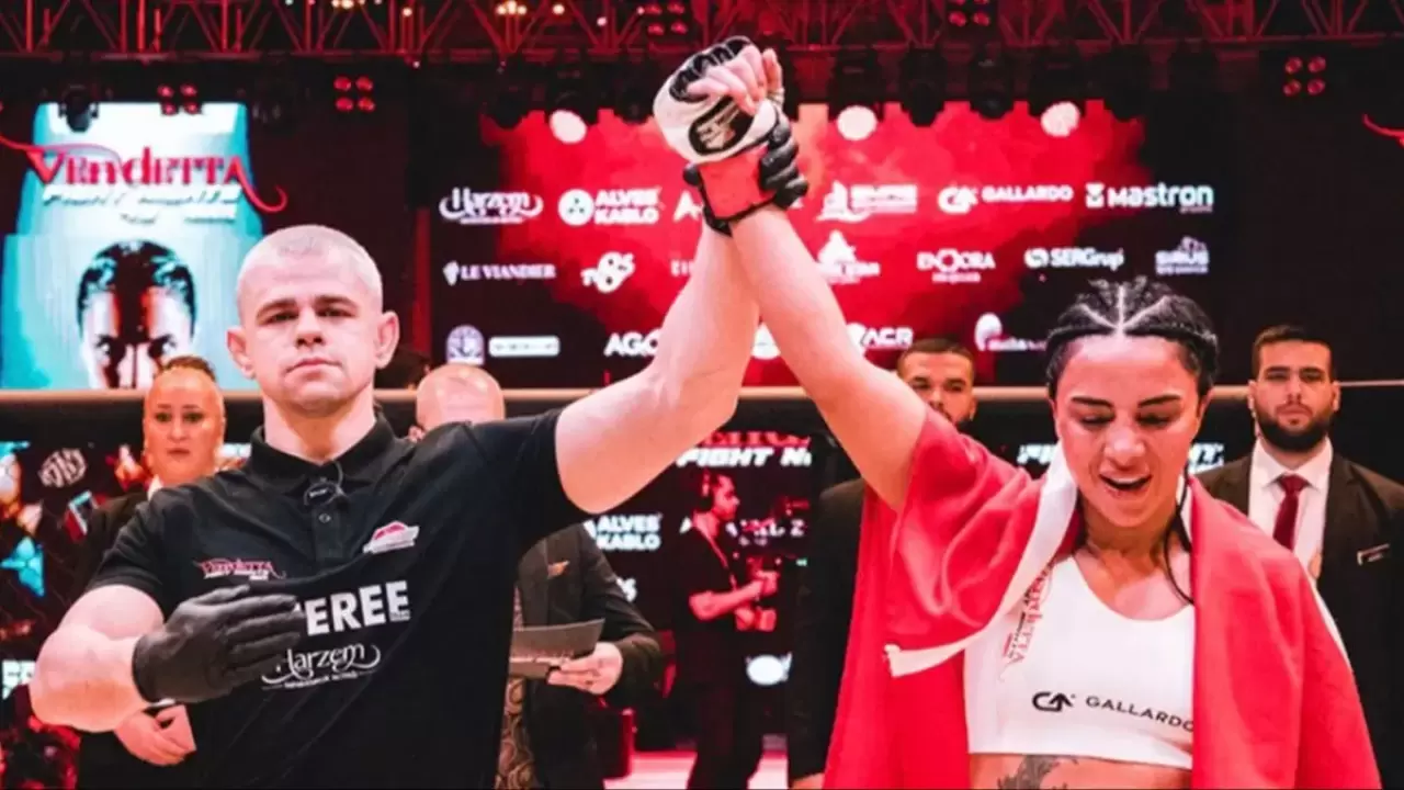 Dünya Kick Boks Şampiyonu ve milli sporcu Sabriye Şengül, Ankara'da düzenlenen Vendetta Fight Night organizasyonunda Macar rakibi Juhasz Beata'yı nakavt ederek altın madalya kazandı.