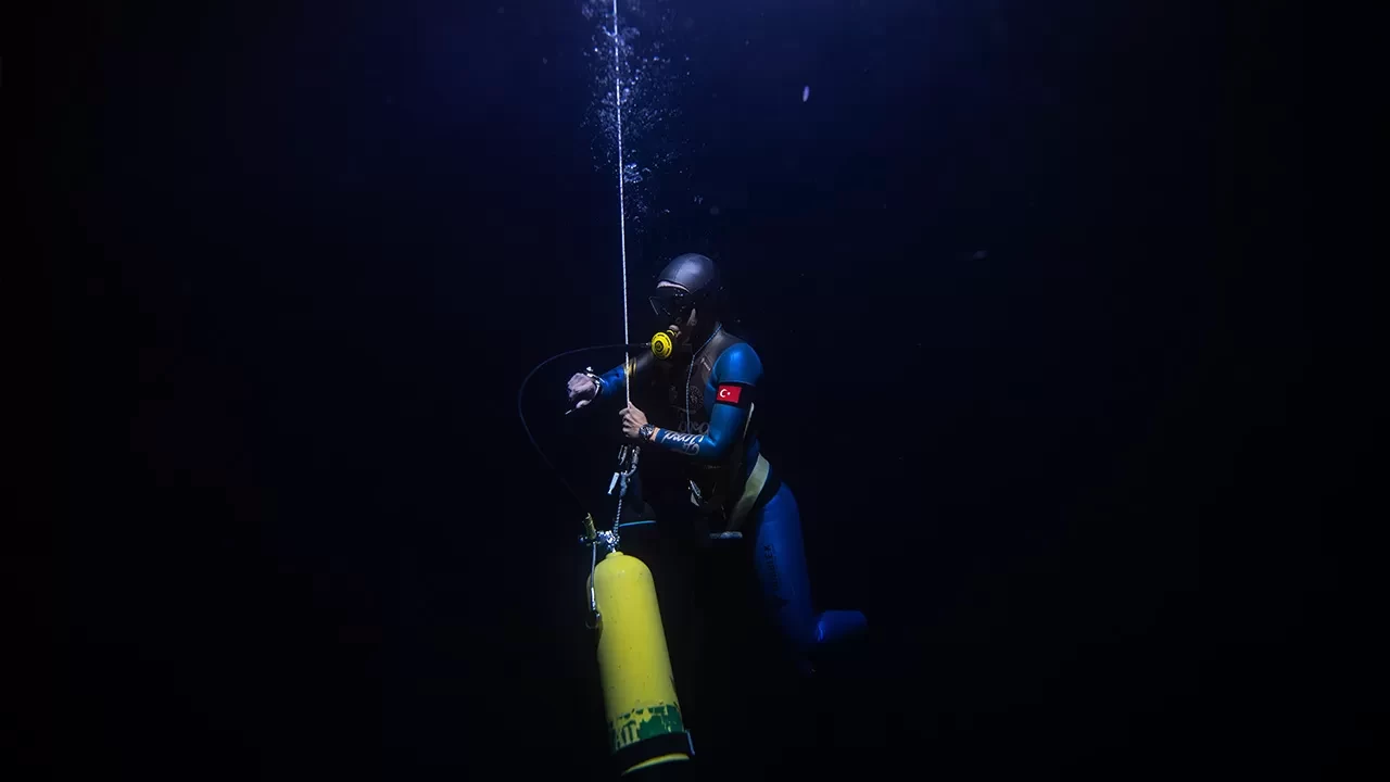 “Bu dalışı gözünüzde canlandırmanız için yaklaşık 40 katlı bir binanın en dibine inip çıktığımı varsayabiliriz. Bu derinlikler daha önce inilmemiş derinlikler. Kendimi astronot gibi hissediyorum, zaten suyun altında yer çekimi de çok az. Şu an havada hissettiğimiz 1 atmosfer, suyun altına ben 11 atmosferin üzerinde bir basınca maruz kalacağım. Her santimetrekareme 11 kilodan fazla bir basınç uygulanıyor. Vücudumun buna dayanacağını diliyorum ve antrenmanlarımızı bu şekilde yapıyoruz.”