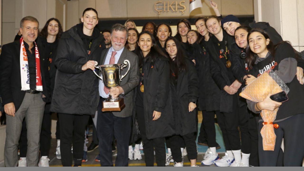 İstanbul Havalimanı VIP çıkışına gelen Eczacıbaşı Dynavit, bayraklarla ve bando takımıyla karşılandı.
