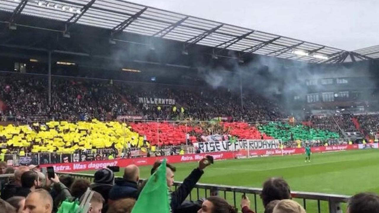 Tribünlerde sarı-kırmızı-yeşil renklerden oluşan koreografi sergilenirken ‘rojova için ayaklan’ yazılı pankartlar asıldı. Almanya Futbol Federasyonu ‘selam’ verilmesinden dolayı birçok futbolcuya ve kulübe ceza yağdırırken, terörü destekleyen pankartın açılmasına ise sessiz kalması tepkiye yol açtı. St. Pauli’nin Türklerden oluşan ‘Ölene kadar’ adlı taraftar grubunun ise buna nasıl bir tepki göstereceği merak konusu oldu. Bazı taraftarlar bundan sonra kulüp üyeliğinden istifa ederek maçlara gitmeyeceklerini ve takımı protesto edeceklerini açıkladı.