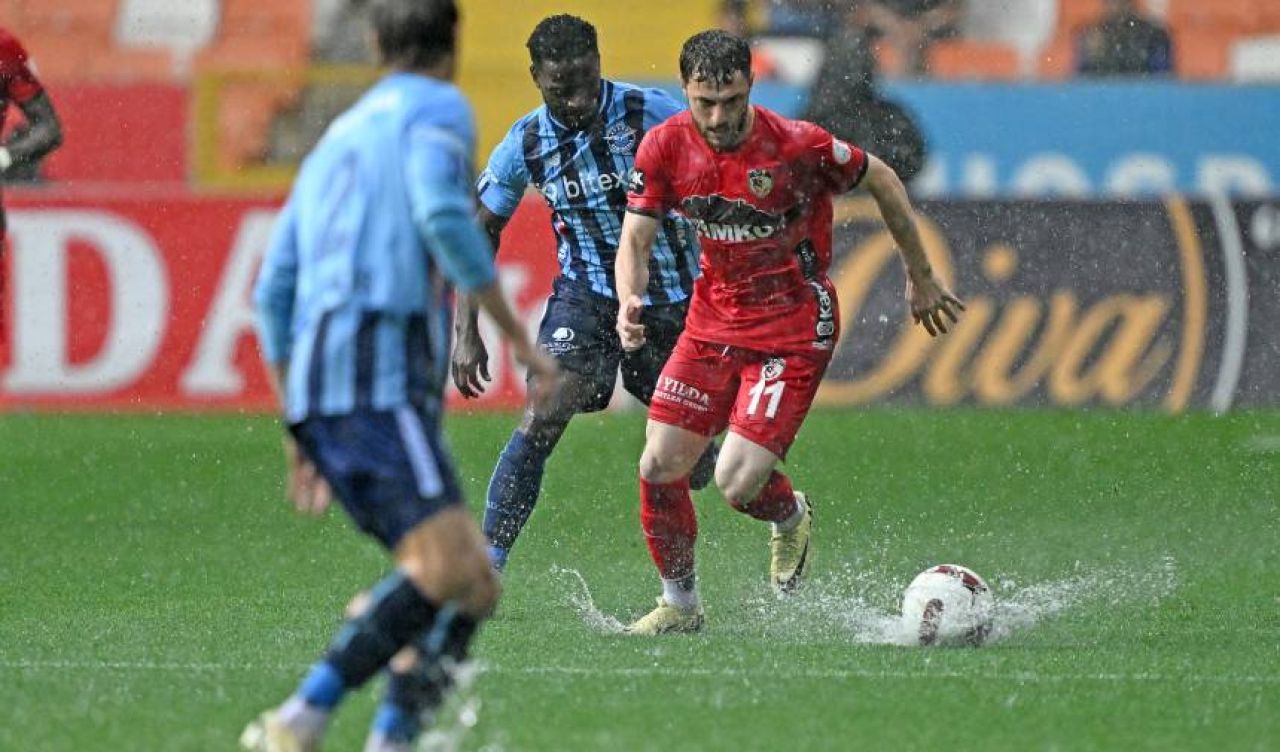 Adana Demirspor-Gaziantep FK maçı, yoğun yağış nedeniyle durduruldu.
