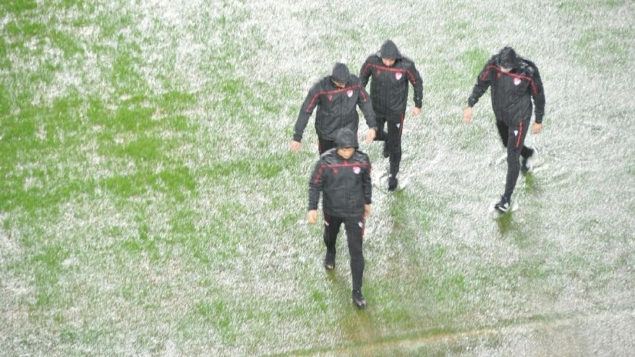 Hakem Ramazan Keleş, saha içerisinde yaptığı kontrollerin ardından mücadelenin ertelenmesine karar verdi.