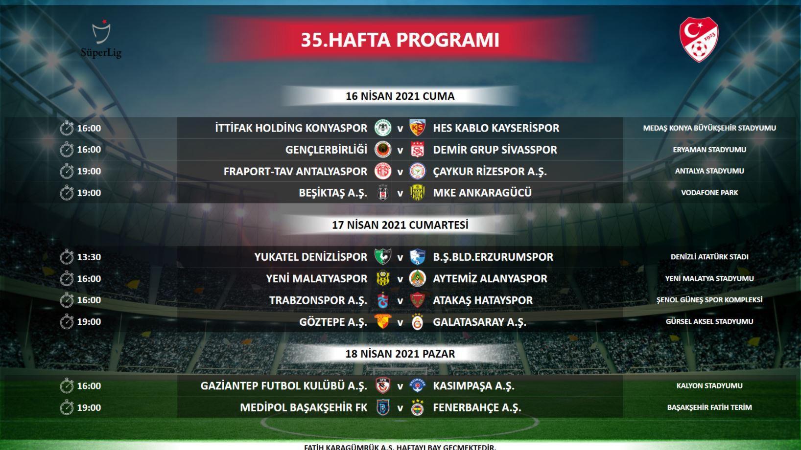 2020-2021 Sezonu Süper Lig 35, 36, 37, 38 ve 39. hafta müsabaka programları açıklandı.