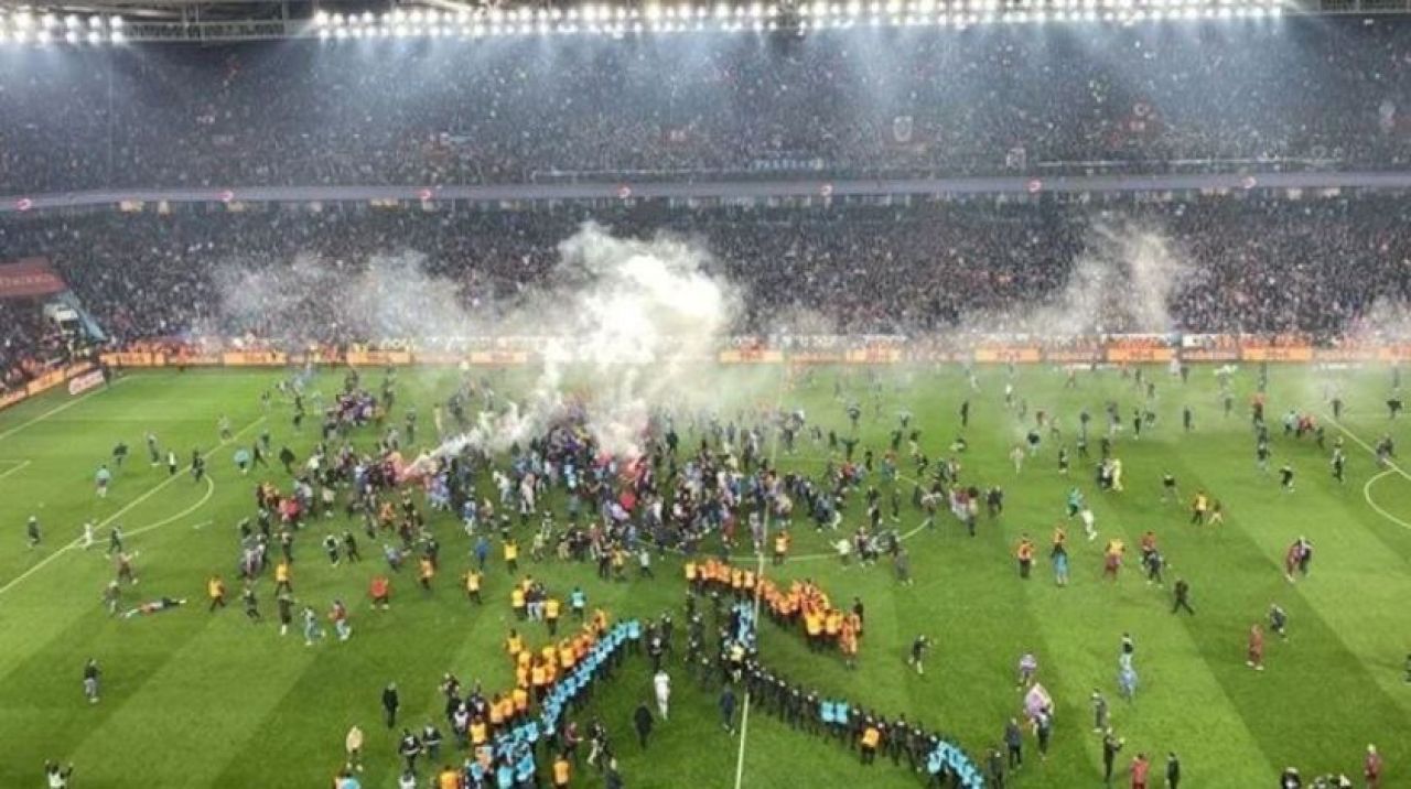 Duraklamalar oynanırken Trabzonspor taç kazandı ancak tribünler maçın bittiğini zannedip sahaya indi. Yüzlerce taraftar art arda sahaya inerken stadyumda üst üste anonslar yapıldı.