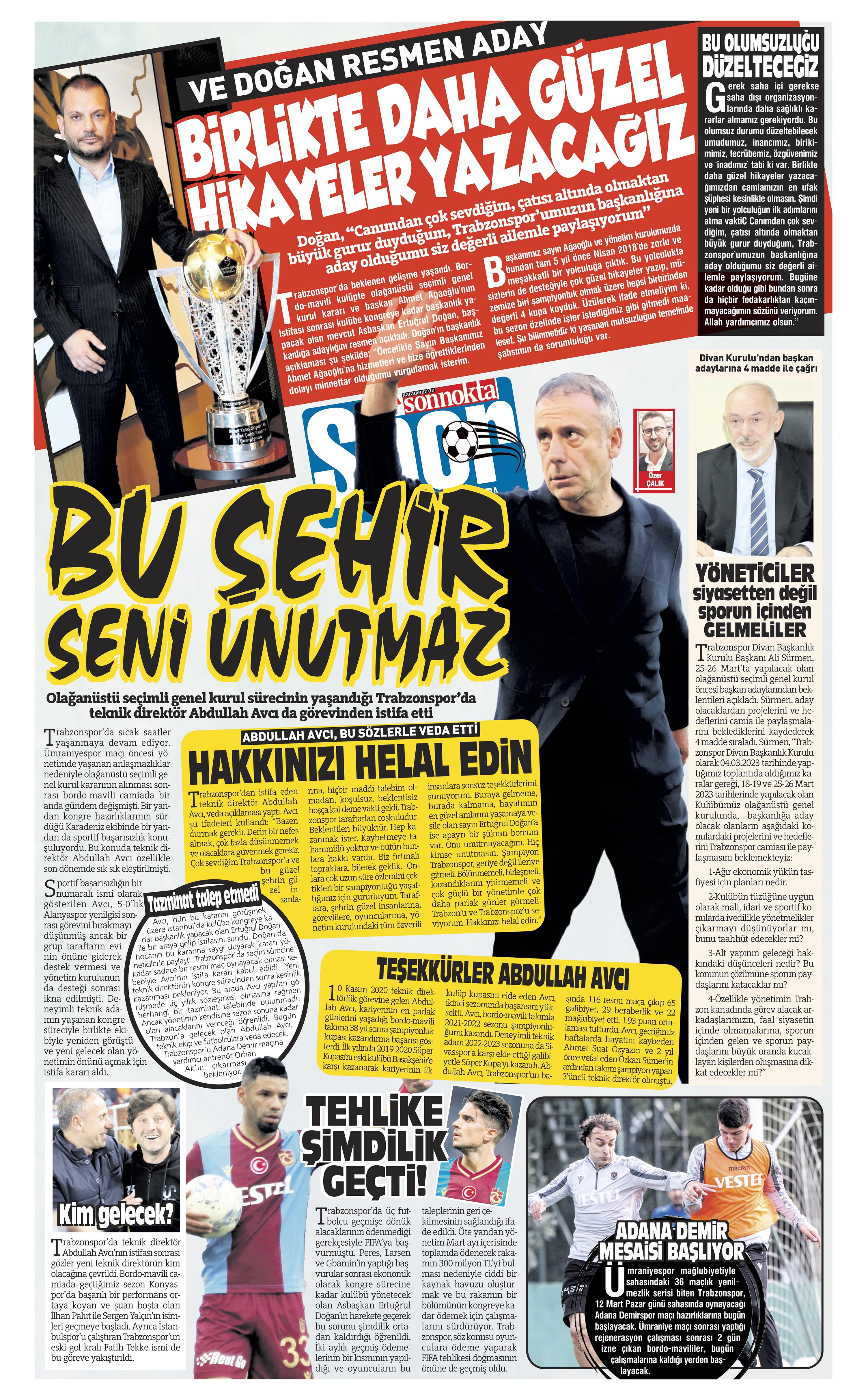 Trabzon’da yayın yapan yerel gazeteler, takımın son şampiyon hocası Abdullah Avcı’nın istifasını sayfalarına taşıdı. Bordo mavili takımın yarıştığı her kulvarda aldığı başarısız sonuçlar nedeniyle eleştirilerde bulunan gazeteler, Abdullah Avcı’nın istifasını ‘Trabzon’da Avcı dönemi sona erdi’, ‘Bu şehir seni unutmaz’, ‘Avcı’dan duygusal veda’, ‘İstifasını verdi, Trabzonspor’a sevdasını bu sözlerle anlattı: Parada gözüm yok’ başlıklarıyla okurlarına duyurdu.