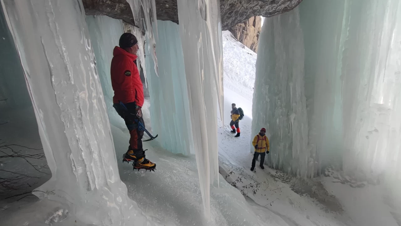Van'da Vadi Doğa Sporları Kulübü üyesi 14 dağcı, Erek Dağı'nda buz tutan Sütun Şelalesi'nin bulunduğu alana tırmanış yaptı. Vadi Doğa Sporları Kulübü üyesi 14 dağcı, karla kaplı 3 bin 204 rakımlı dağa tırmanarak, yaklaşık 20 metre yüksekliğindeki şelale ve buz sarkıtlarının bulunduğu mağaraya ulaştı. Burada, sarkıt ve dikitlerin oluştuğu mağarayı ve buz tutan şelaleyi inceleyip fotoğraf çeken dağcılar, ardından inişe geçti.