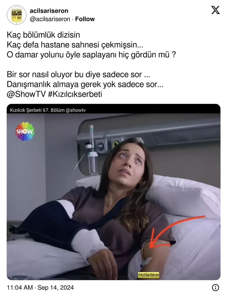 Dikkat çeken diğer sahne ise Görkem'in hastanede serum aldığı sahne oldu.