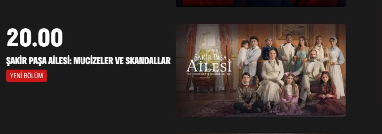 Şakir Paşa Ailesi dizisinin bu akşam yeni bölümü ile saat 20:00'de now tv'de yayınlanması bekleniyor. Dizi now tv'nin yayın akışında yeni bölümü ile gözüküyor.