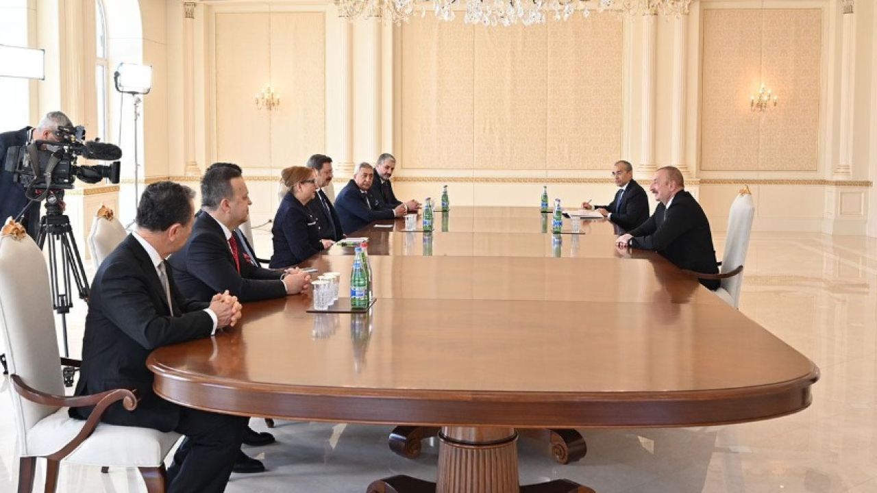Azerbaycan Cumhurbaşkanı İlham Aliyev, kabulde, Türk halkının desteğini her zaman hissettiklerini, Dağlık Karabağ savaşında da Türk toplumunun Azerbaycan'ın yanında olduğunu söyledi.