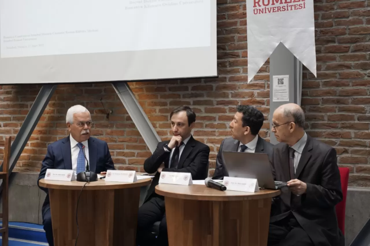 İstanbul Rumeli Üniversitesi Haliç Uygulama ve Araştırma Yerleşkesi Hibrit Salonu'nda icra edilen konferansta, "Romanya ve Türkiye Arasında Kültürel Köprüler: Kemal Karpat-Romanya ve Türkiye Tarihçisi. Tarih ve Hafıza Arasında" başlığıyla konuşmalar yapıldı.