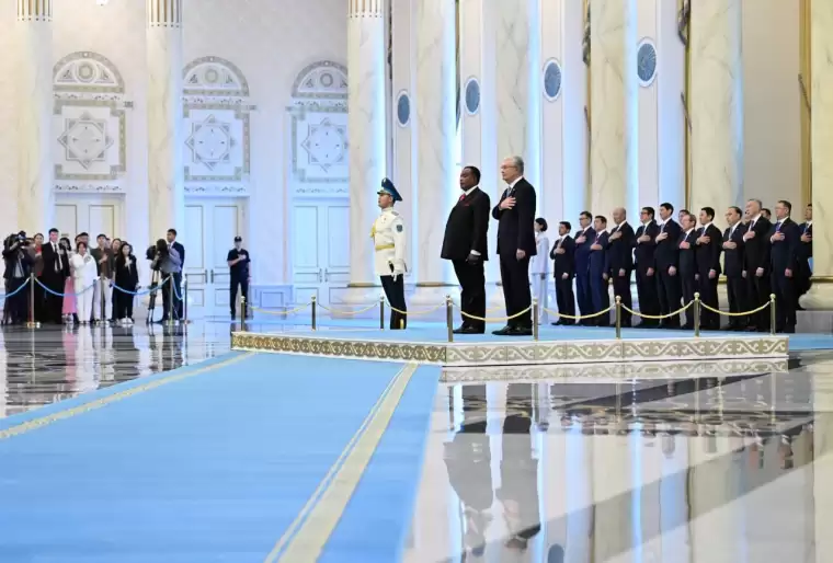 Kazakistan Cumhurbaşkanı Kasım Cömert Tokayev'in daveti üzerine ülkede ilk kez bulunan Nguesso, Cumhurbaşkanlığı Sarayı Akorda'da törenle karşılandı.