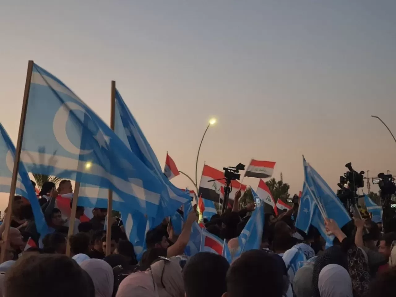 Kerkük yerel yönetiminde söz hakkı sahibi olmak istediklerini ifade eden Türkmen protestocular, "Hakkımızı söke söke alacağız" ve "Kerkük Türk'tür Türk kalacak" sloganları attı.