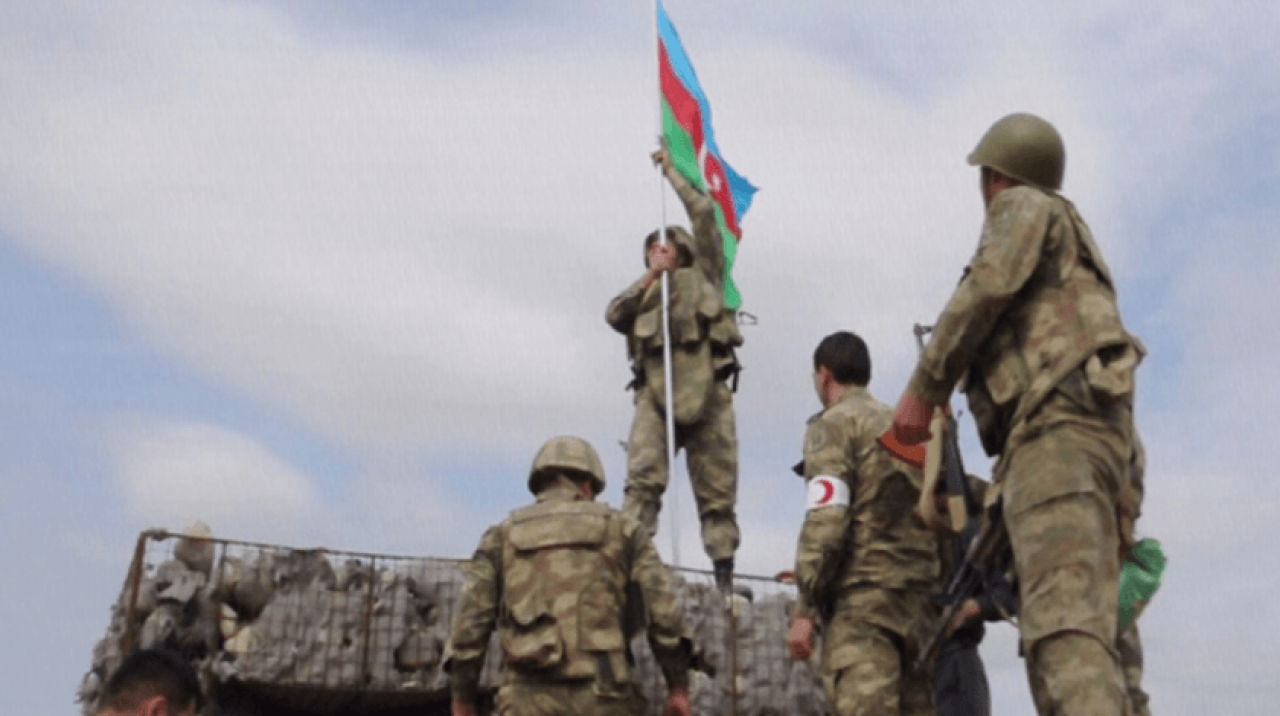 Azerbaycan ordusu, mevziye Azerbaycan bayrağı dikti.