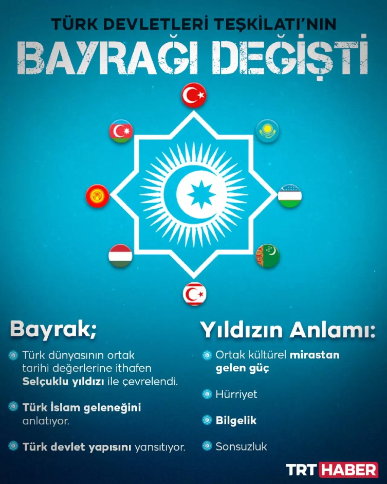 Bayrağın her bir köşesi, Türk Devletleri Teşkilatı'na tam üye ve gözlemci üye olan ülkeleri de temsil ediyor.