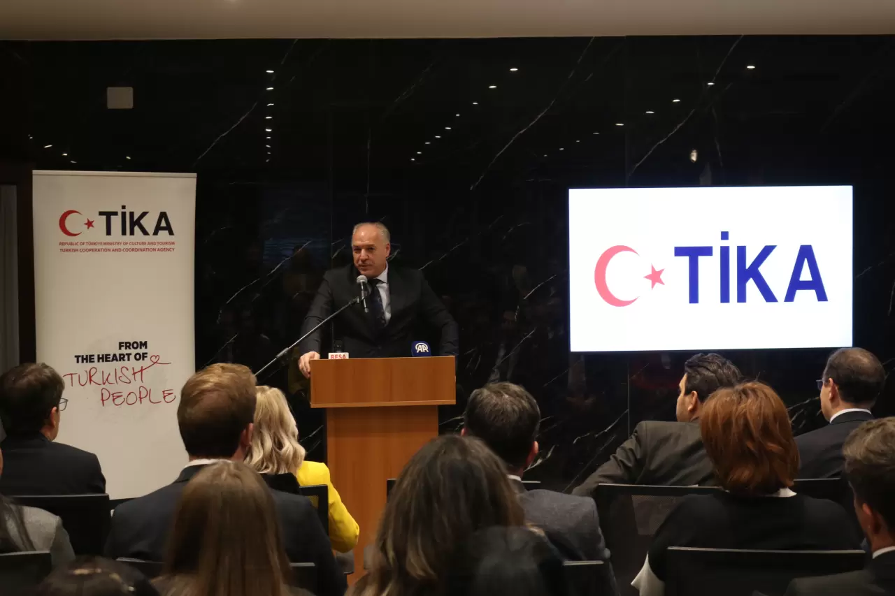 TİKA Başkanı Eren, törende yaptığı konuşmada Gürcistan-Azerbaycan sınırında düşen askeri kargo uçağında şehit olan askerler için başsağlığı diledi.