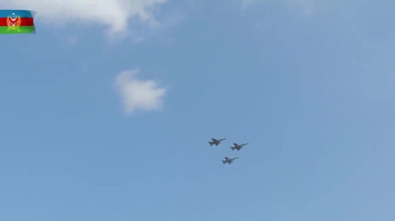 Türk F-16 uçakları, Bakü'nün Kafkas İslam Ordusu tarafından Ermeni ve Bolşevik çetelerinden kurtuluşunun 102. yıl dönümü dolayısıyla Gence kentinde uçuş yaptı.