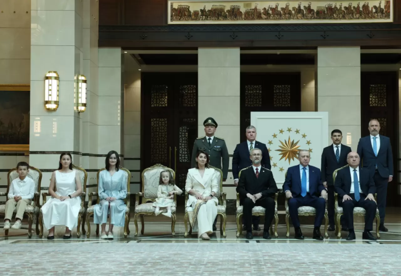 Cumhurbaşkanlığı Külliyesi'nde gerçekleşen kabulde, Nariman Celâl’in eşi Leviza Celâl ve çocukları da bulundu.