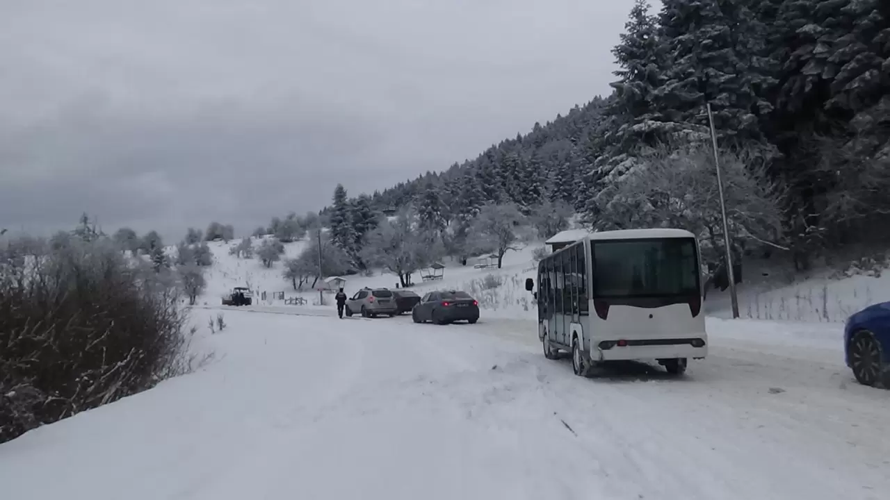 Kar manzarasını görmek isteyen tatilciler, park girişinde uzun araç kuyrukları oluşturdu. Fotoğraf çektiren ve karın keyfini çıkarmak isteyen vatandaşlar renkli görüntüler oluştururken, bazı sürücüler hazırlıksız yakalandı.