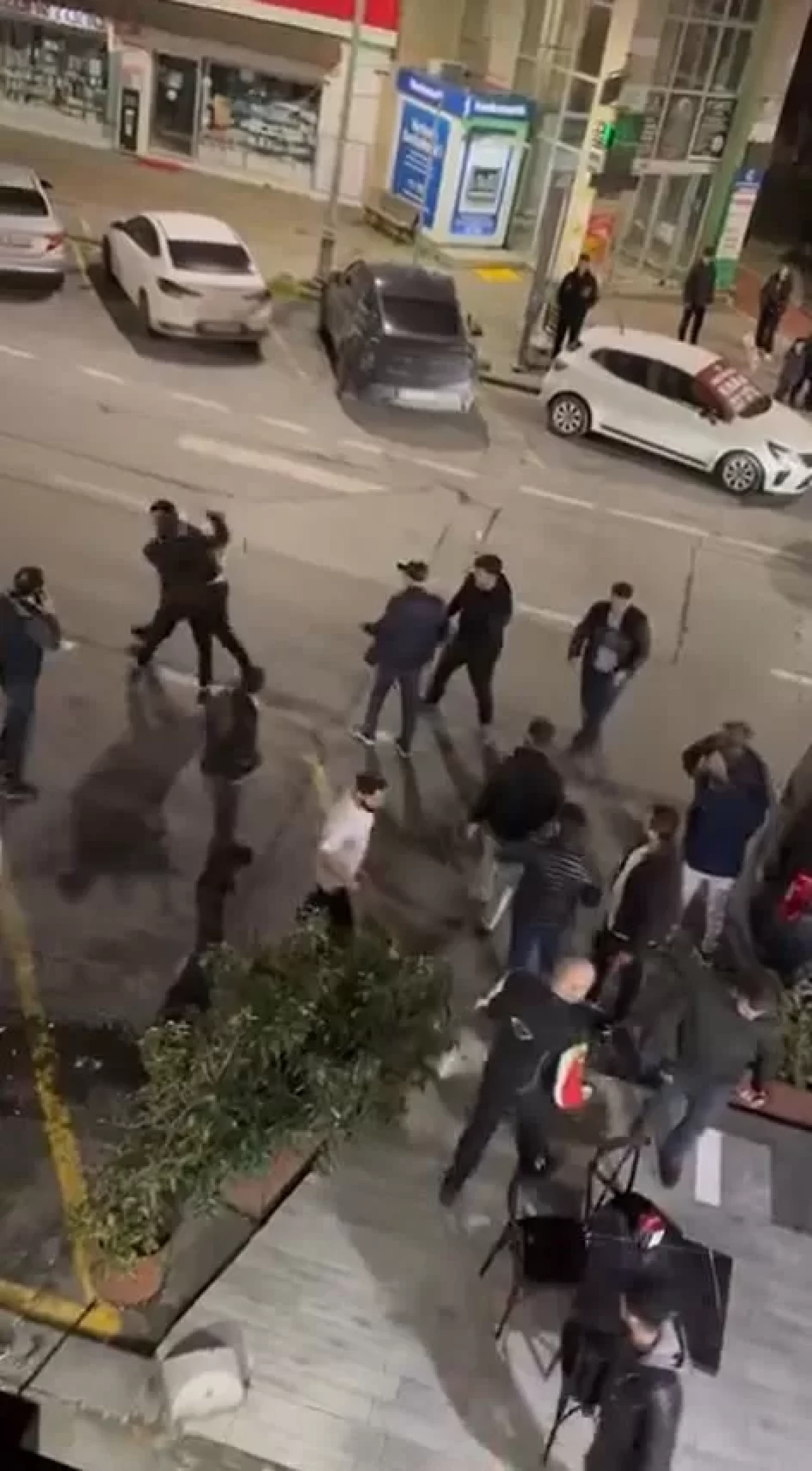 Tartışmanın büyümesiyle taraflar birbirine saldırdı. Kavgaya gruptaki bazı kişilerin de dahil olmasıyla yaşanan arbede dakikalarca sürdü. Çevrede bulunan arkadaşları, tarafları ayırmak için uzun süre çaba sarf etti.
