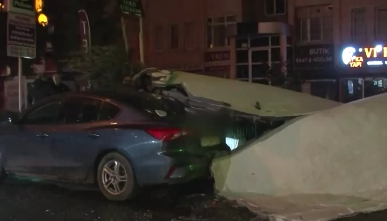 İstanbul’un Beylikdüzü ilçesine bağlı Barış Mahallesi Bestekar Sokak’ta, akşam saatlerinde etkisini artıran kuvvetli rüzgar tehlikeli bir olaya neden oldu. Yüksek katlı bir binanın dış cephesinde bulunan kaplama malzemeleri yerinden koparak, bina önünde park halinde bulunan otomobilin üzerine savruldu.