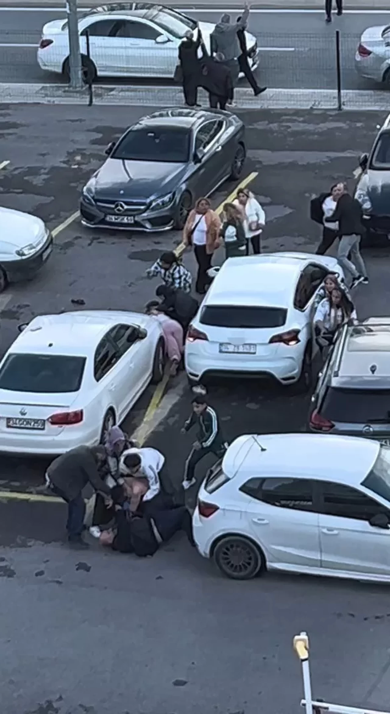 Tartışma bir anda kavgaya dönerken, taraflar birbirlerine tekme ve yumruklarla saldırdı. Bu sırada bir vatandaş öfkeli kalabalığın arasında kalarak uzun süre boyunca yumruklandı.