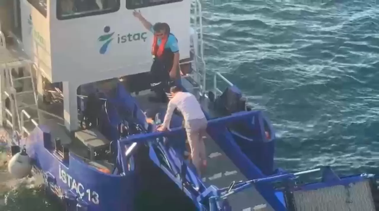 İstanbul'da, Galata Köprüsü'nden denize düşerek boğulma tehlikesi geçiren kadını, bir vatandaş köprüden atlayarak kurtardı. Ekiplerin müdahalesiyle kadın sudan çıkarılırken, kurtaran adamın ise kadının başında beklediği anlar kameraya yansıdı.
