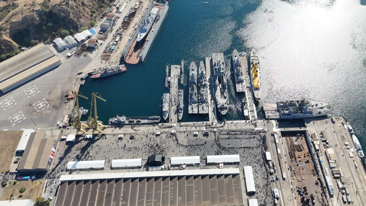 İstanbul Tersanesi Komutanlığı’nda devam eden TEKNOFEST Mavi Vatan'da sergilenen savaş gemileri, dronla tek çekim tekniğiyle görüntülendi.