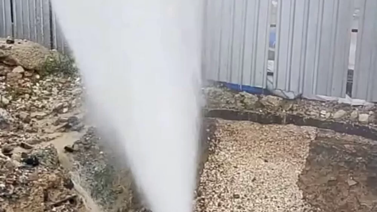 Patlayan borudan metrelerce havaya yükselen sular ise kameralara yansıdı.