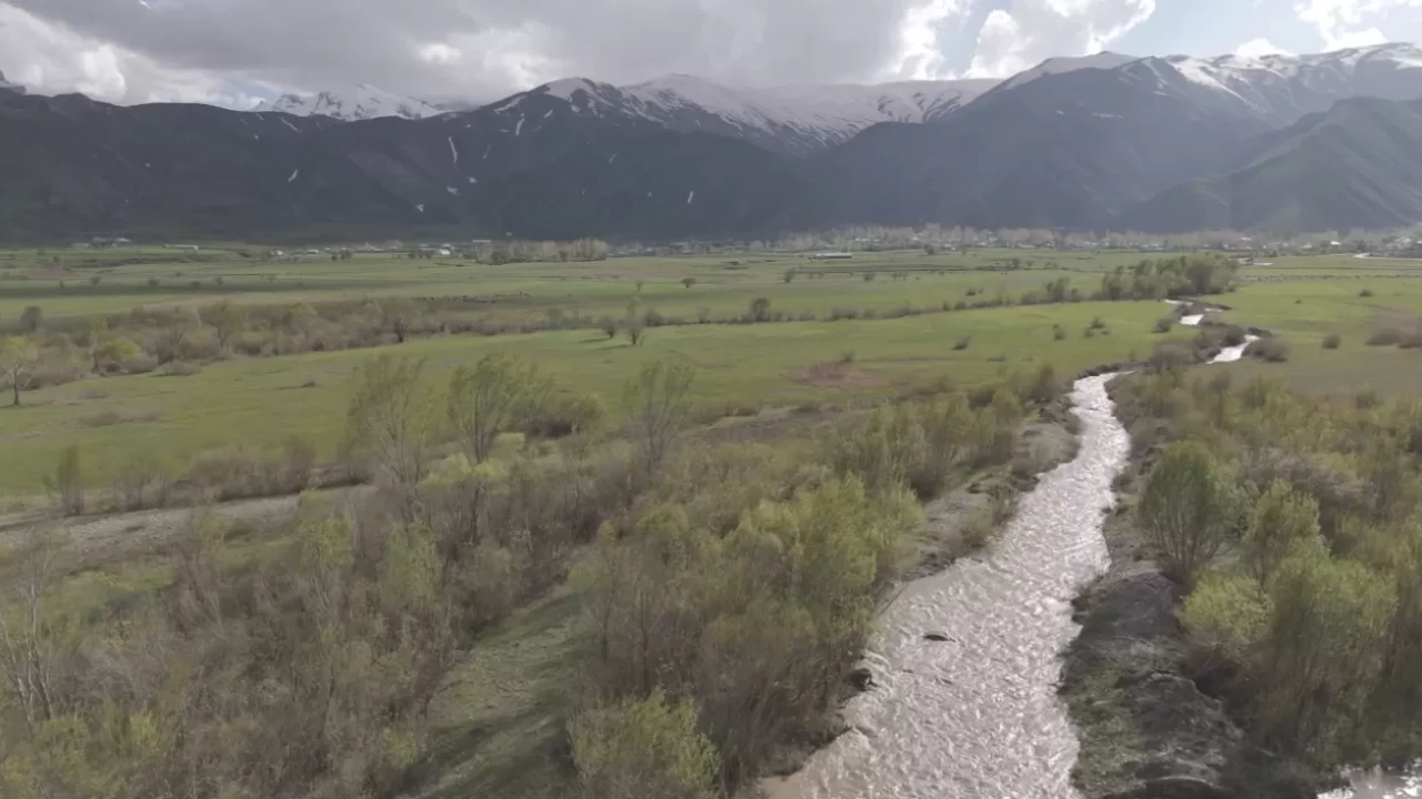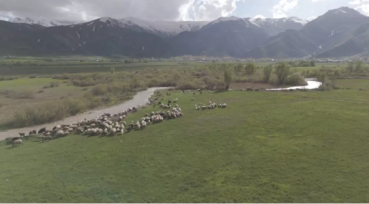 Hakkari'nin Yüksekova ilçesinde karların erimesinin ardından yeşile bürünen ovalar ve otlayan hayvanlar dron ile görüntüledi.